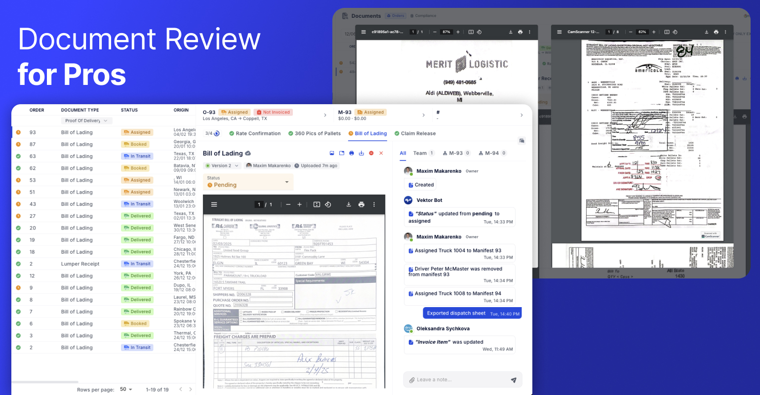 Manage all your load paperwork in one place with our new centralized document feed. Review, approve, and compare documents side-by-side to speed up compliance and approvals. Simplify your workflow and keep everything organized!
