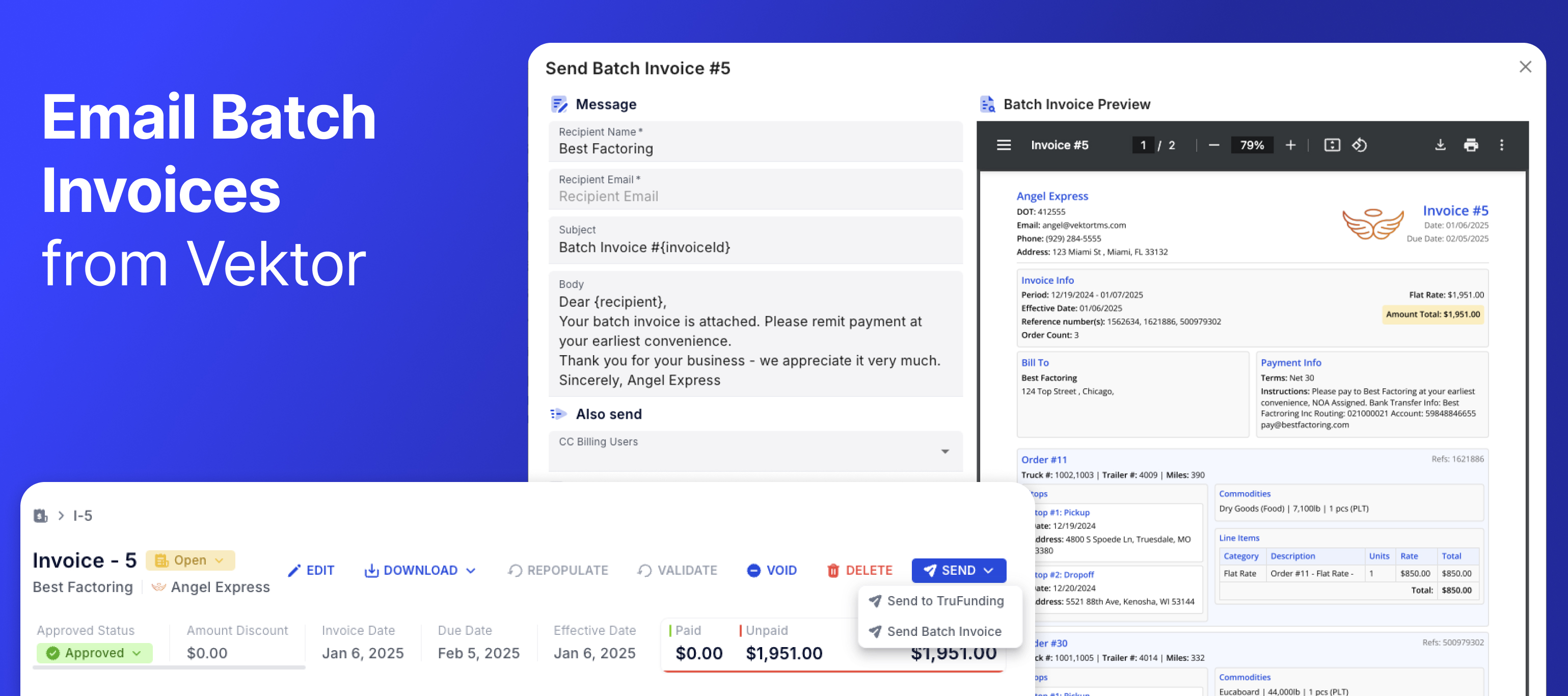 You can now email optimized PDFs of already batched invoices directly from Vektor! This feature streamlines your billing process, making it faster and more efficient to send multiple invoices in one go.