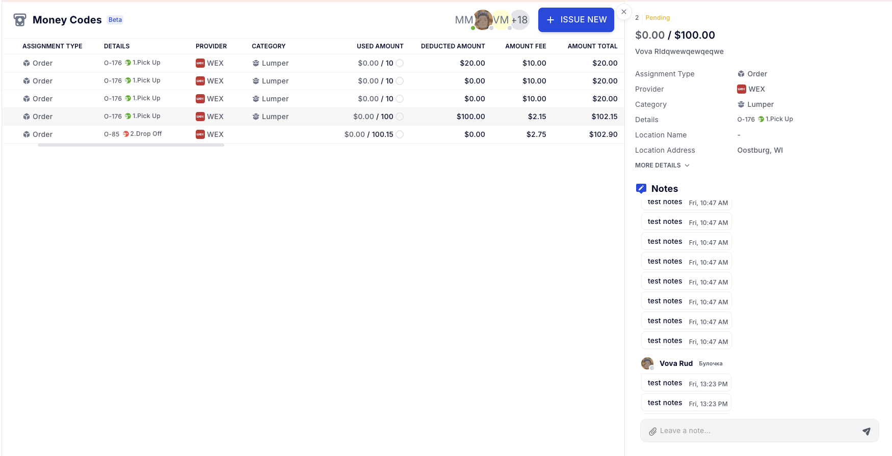 • Need to issue a money code for lumper services during load lifecycle and instantly add it into invoice. When money code is issued, system automatically adds “Lumper receipt” to required documents for an order so driver is prompted to upload it, and streamline the billing.