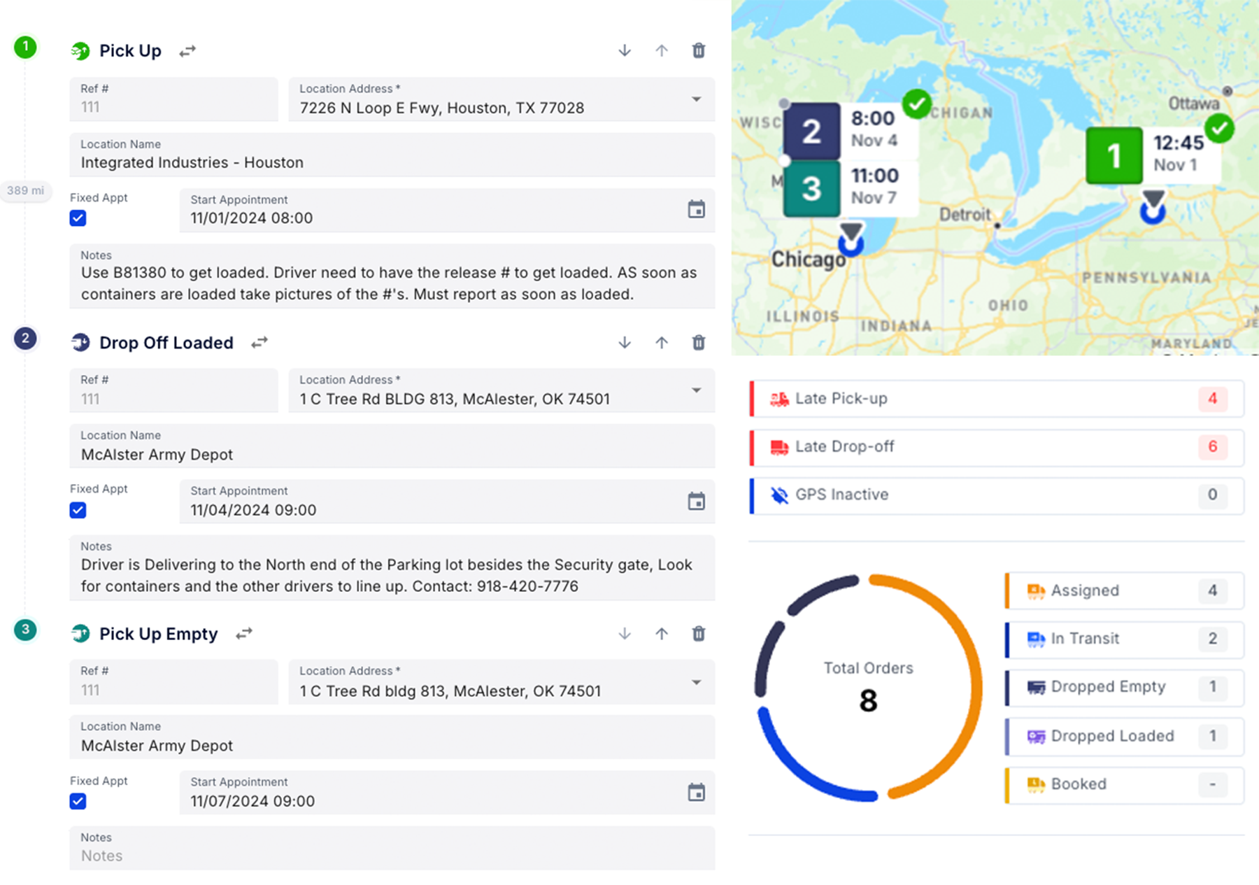 Easily manage drop trailer operations with the ability to create new order stops specifically for drop trailer scenarios. This feature streamlines tracking of dropped trailers for loading or unloading, ensuring you never miss a pickup. Additionally, it supports split operations, allowing one driver to drop a trailer and another to pick it up seamlessly.