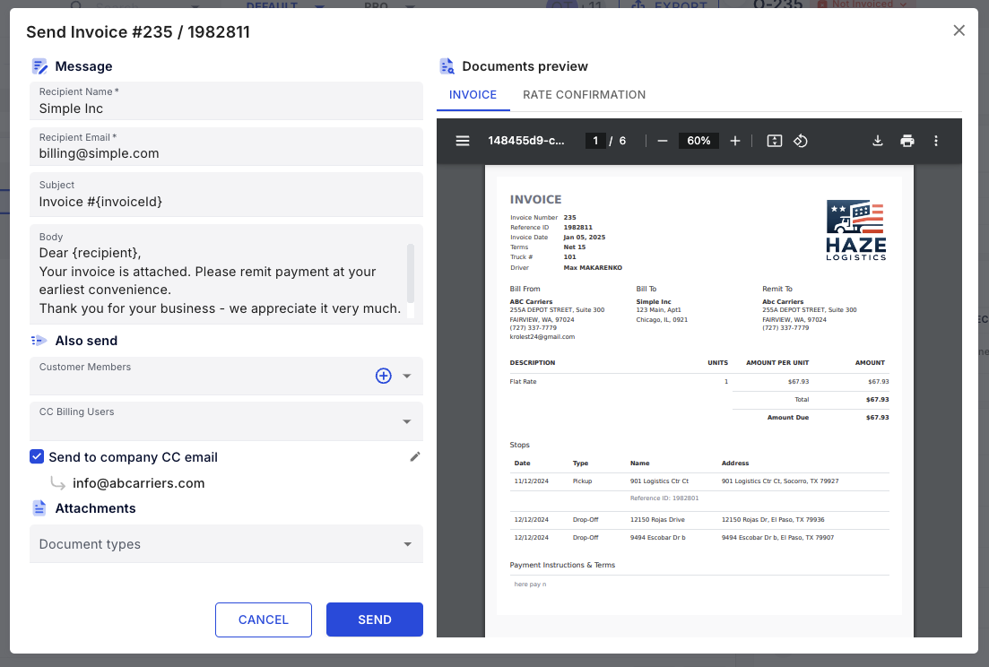 A long-requested feature is finally here! You can now email invoices directly from Vektor’s Billing pages and Order Details, complete with all attachments. This update includes powerful customization options to enhance your invoicing process: