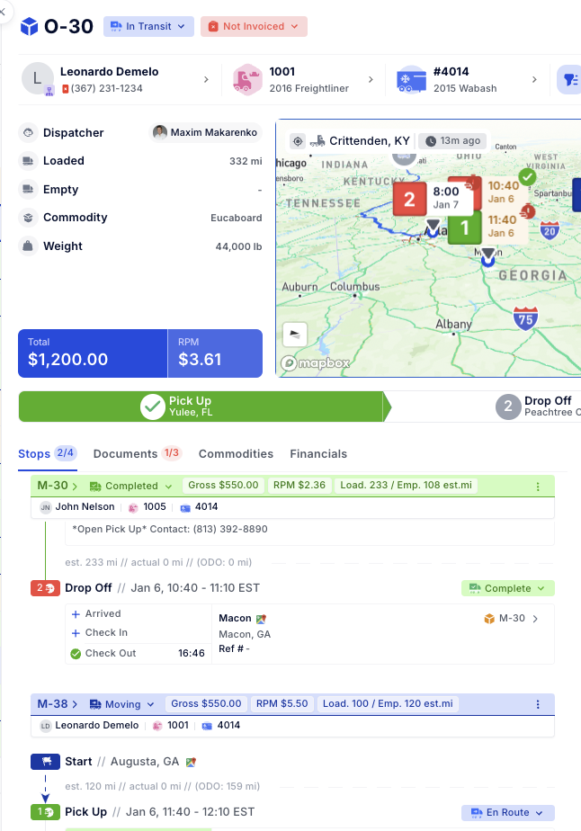 • Example: 1 Pick in NJ → 1 Pick in PA → 1 Drop in GA applies the NJ→GA rate.